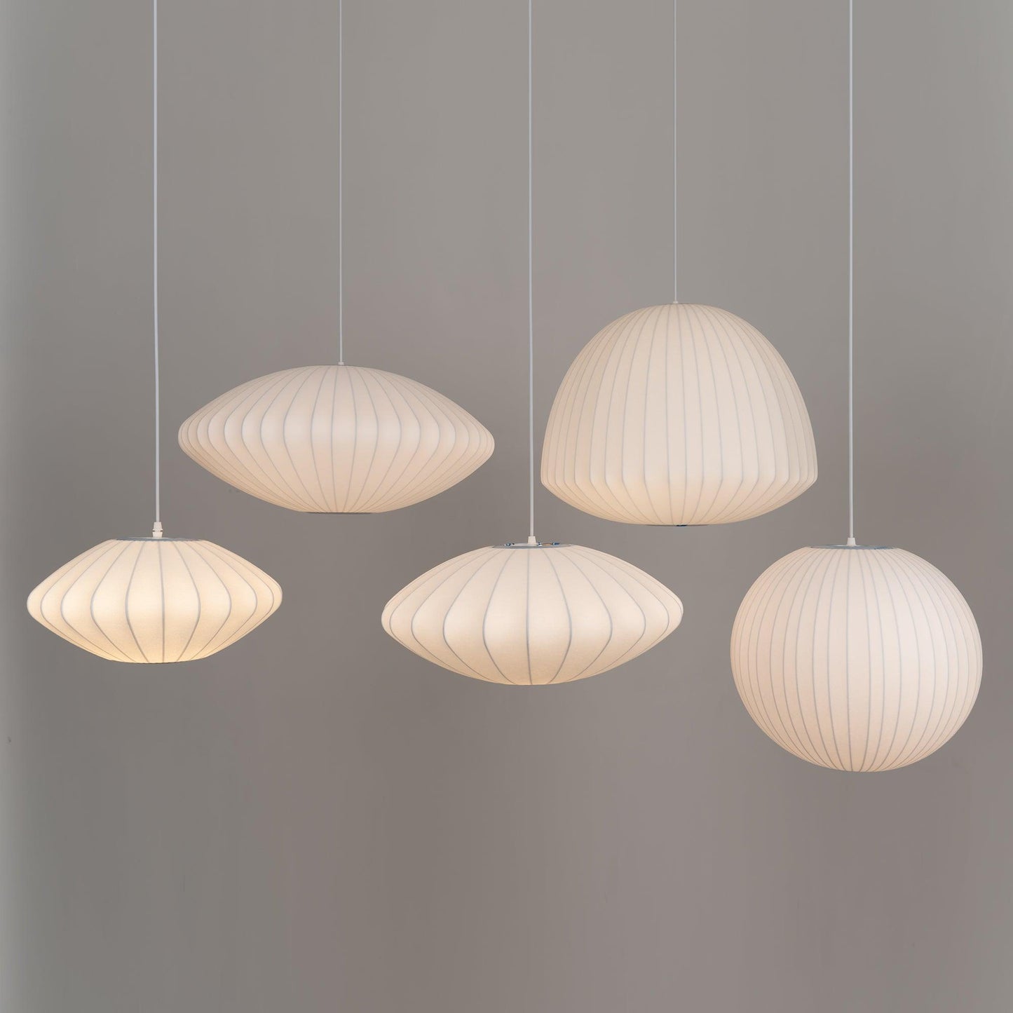 The light weight steel wireframe of the Bubble Pendant ensures its shape is kept even when under tension, and in this particular piece a network of interconnected steel wires produces a delightful geometric crisscross pattern. Hang the Bubble Pendant in a cluster to create a delicate ambient glow in your interior.
