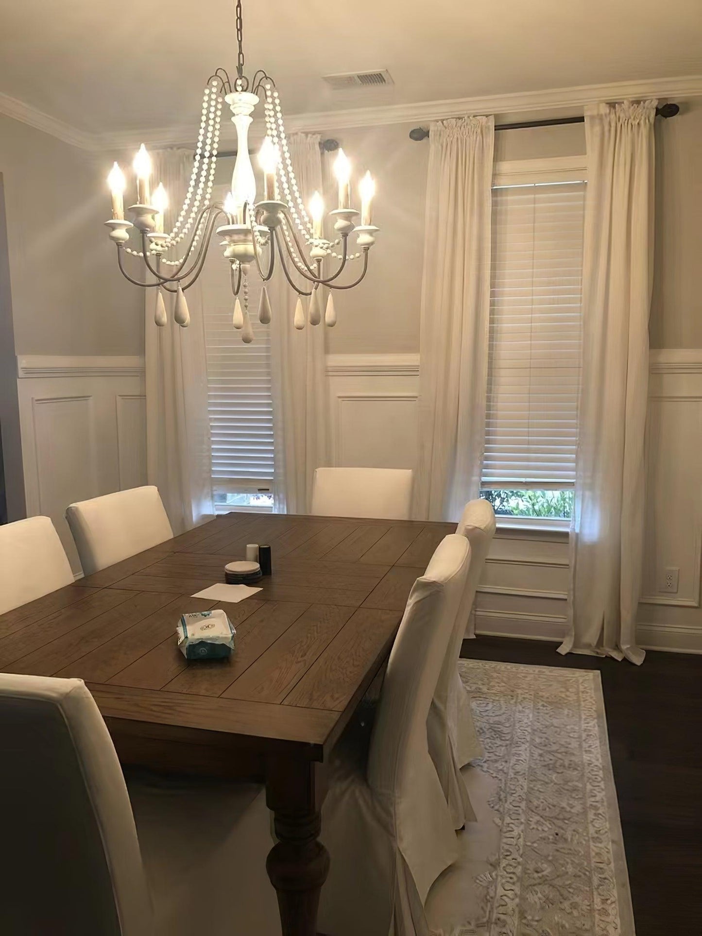 Very happy with this chandelier. It came almost completely put together. Easy to install. Pictures don't do it justice, this light is beautiful