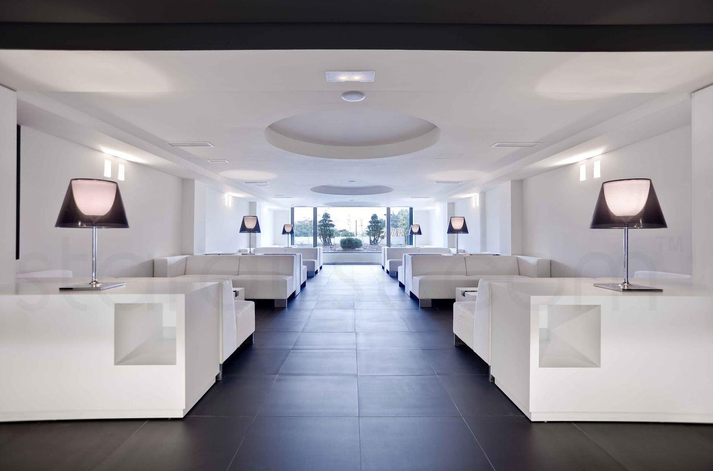 This inspiring table light provides diffused light through a transparent diffuser that gracefully moves the eye upward. The base, rod, and diffuser support are die-cast, polished alloys. It features a polished aluminum tubular and an injection-molded, matte black PA (nylon) base cover. The opal inner diffuser is an injection-molded PC (polycarbonate). The outer diffuser is transparent or fumèe PMMA (polymethyl methacrylate).