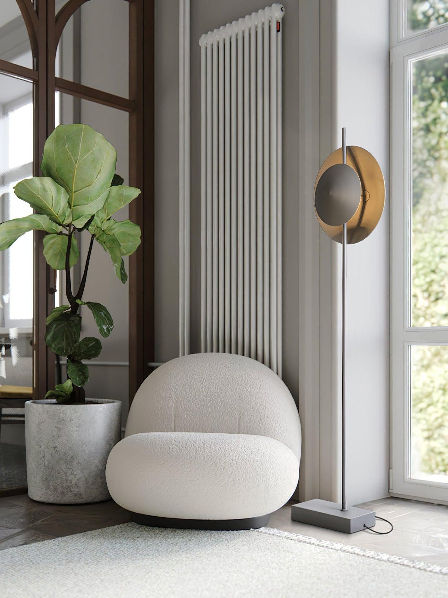 The timeless collection is characterized by a passion for materials and refined textures combined with aesthetic design and an organic, calm color palette. The play of light that mimics the eclipse creates a cozy atmosphere, which makes the Dawn luminaire look like a sculptural work of art. The hand-made oxidized aluminum base gives the lamp stability while the two lampshades create a subtle and geometric look. The stylish luminaire is both a practical light source and an eye-catching design element.
