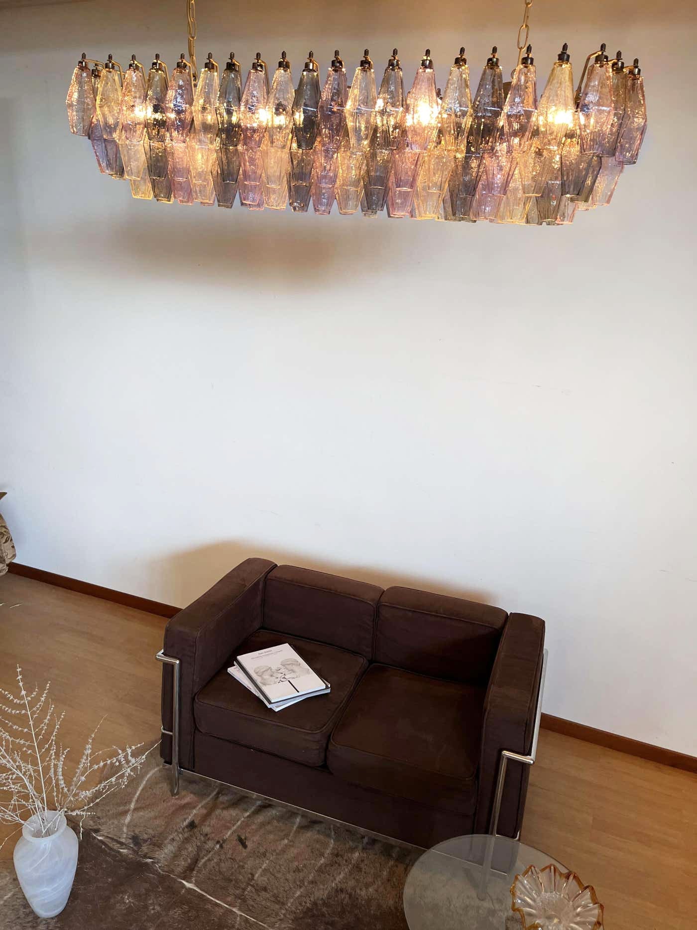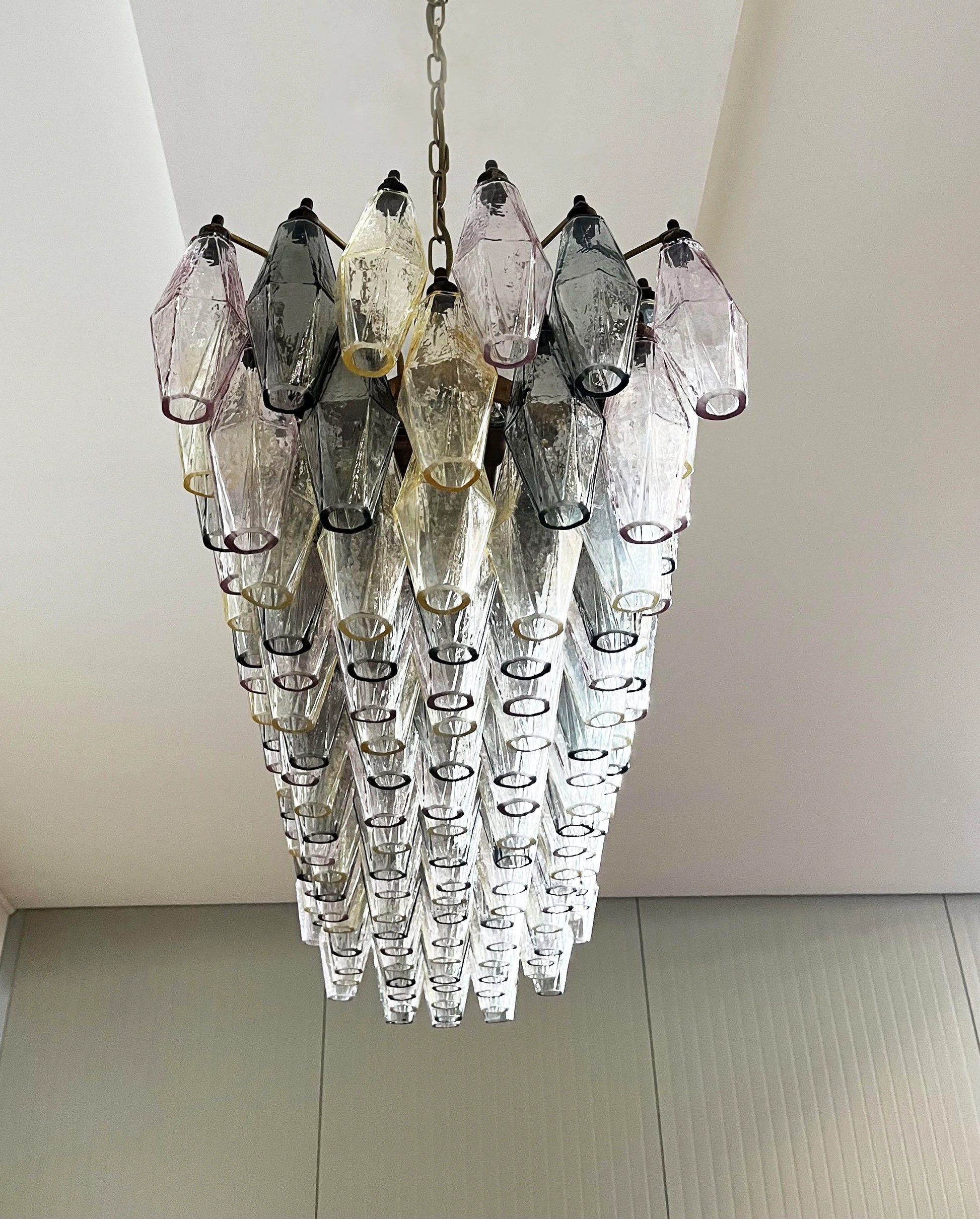 Elegant Multicolored Murano Poliedri Glass Chandelier, To enhance the quality of your home, it is the perfect combination of elegance and artistic craftsmanship. Featuring beautifully crafted Multicolored glass elements, this chandelier adds a touch of sophistication and luxury to any space. Each glass piece is meticulously handcrafted, creating a warm and pleasant atmosphere and complementing your decoration.