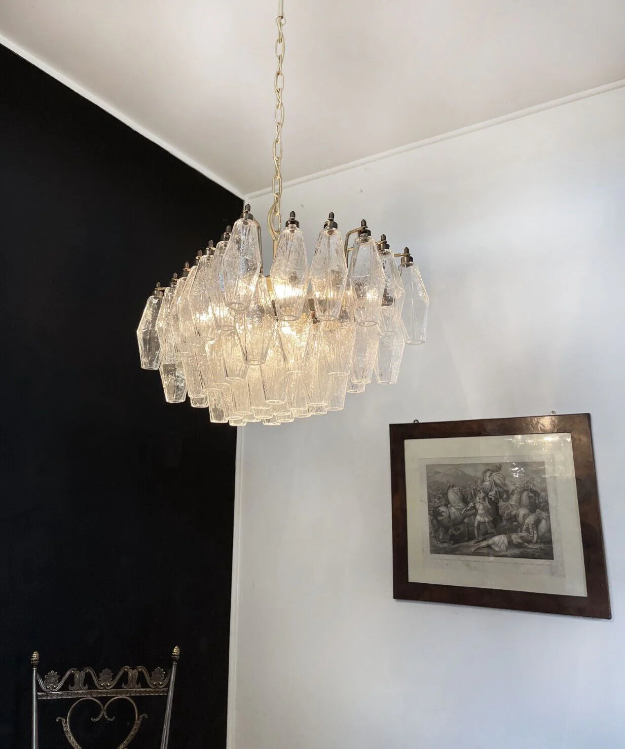 Elegant Murano Poliedri Trasparent Glass Chandelier, Add a touch of elegance and sophistication to your home. This exquisite chandelier features beautifully crafted Trasparent glass elements, arranged in a stunning design that brings both charm and luxury to any space.