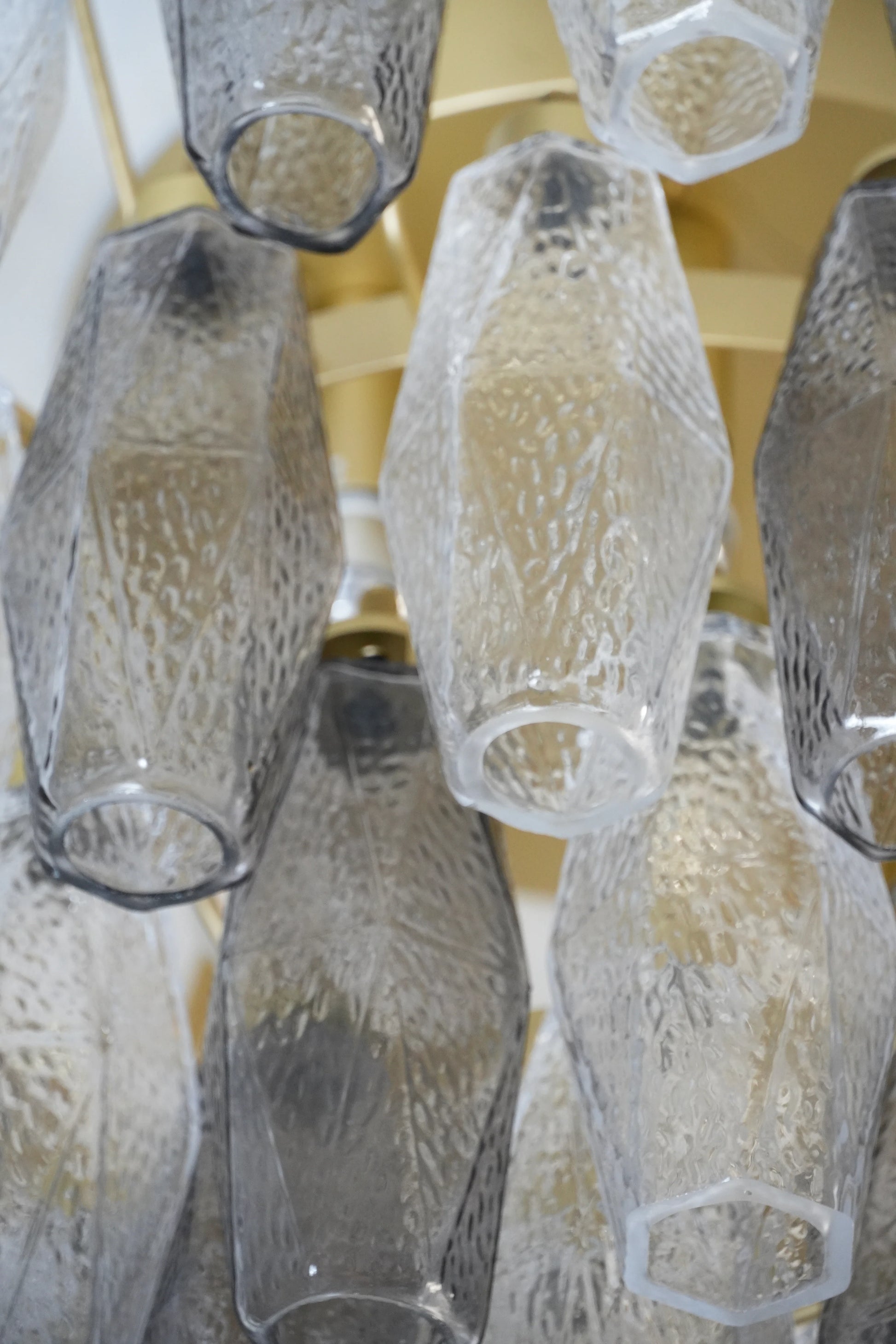 Experience elegance and craftsmanship with the Murano Poliedri Transparent Smoked Ceiling Light. Made with Transparent glass pieces, its smoky and clear hues add a vibrant and dynamic atmosphere to any room. With a sleek design, it seamlessly integrates with your decor. Elevate your home with this true masterpiece of glass art.