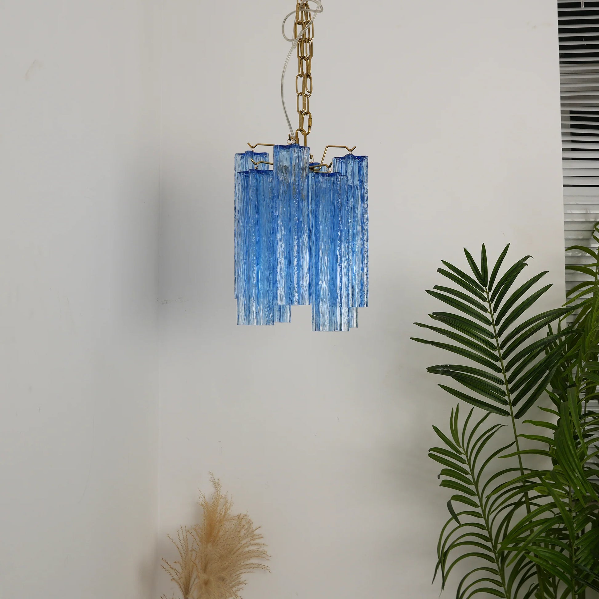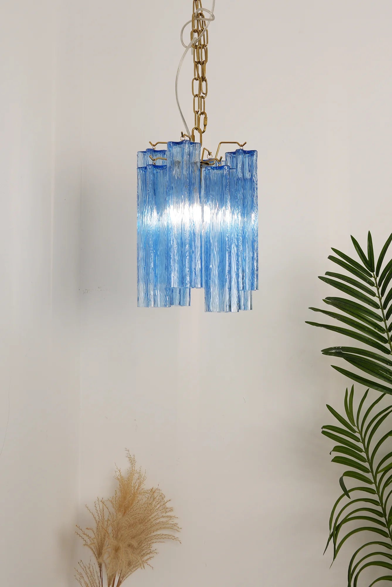Elevate your decorative lighting by combining artistic craftsmanship with modern elegance with the Vintage Blue Murano Glass Chandelier. Featuring beautiful Blue glass tubes, it enhances the beauty of any room.