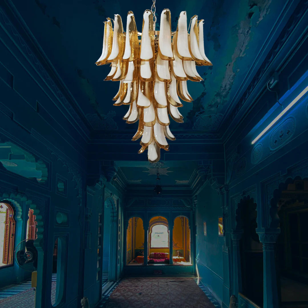 Vintage Murano Caramel Glass Petals Chandelier