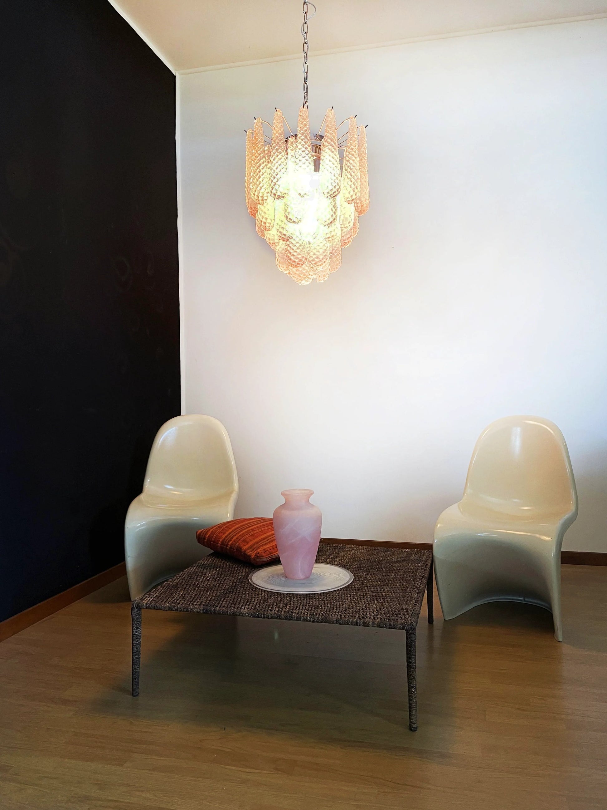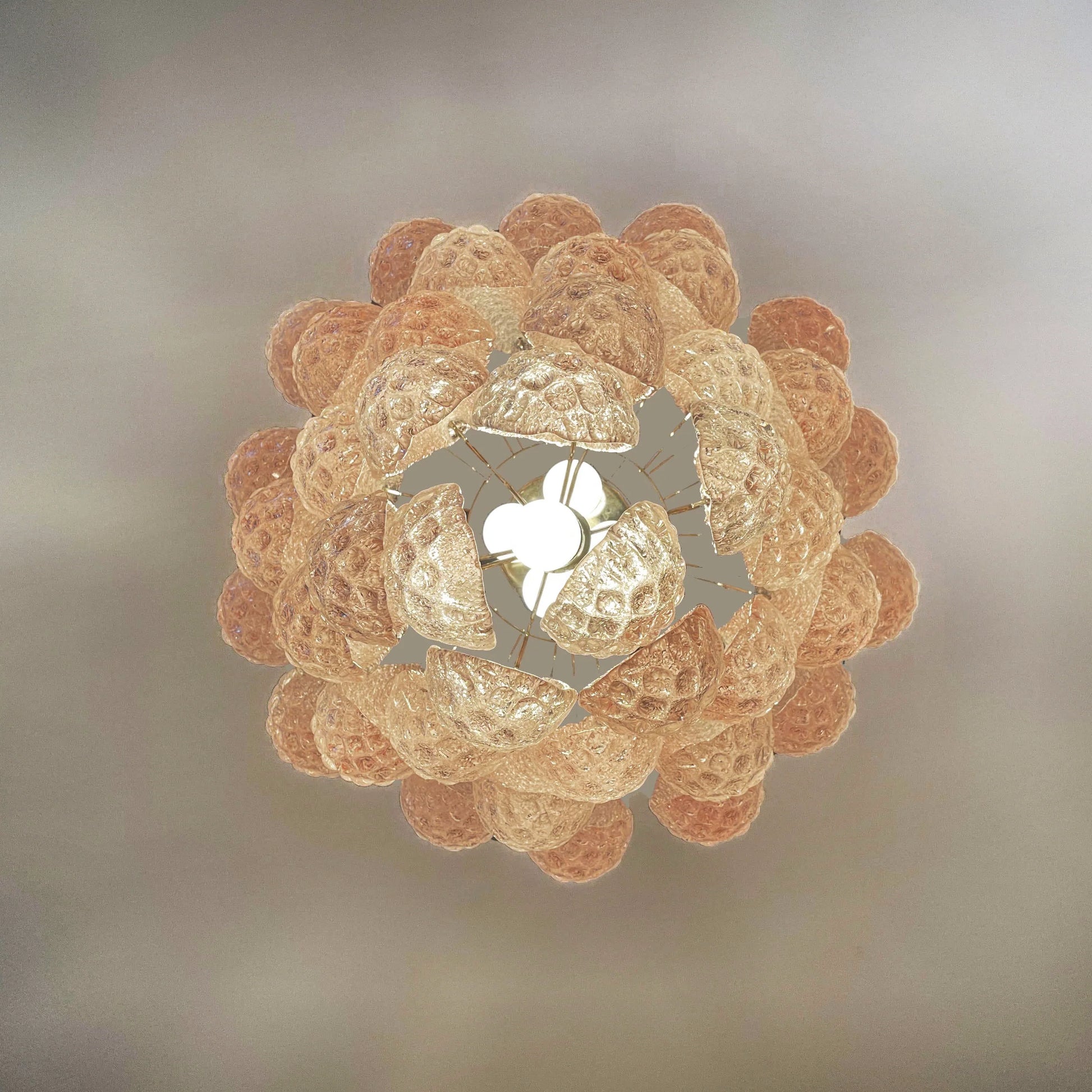 Vintage Murano Pink Glass Petals Chandelier, Inject romance and elegance into your home. This exquisite chandelier features beautifully crafted pink glass petals, arranged to create a dazzling display of light and color that will enhance any space. Carefully handcrafted, it emits a warm and inviting glow, perfect for creating a cozy ambiance.
