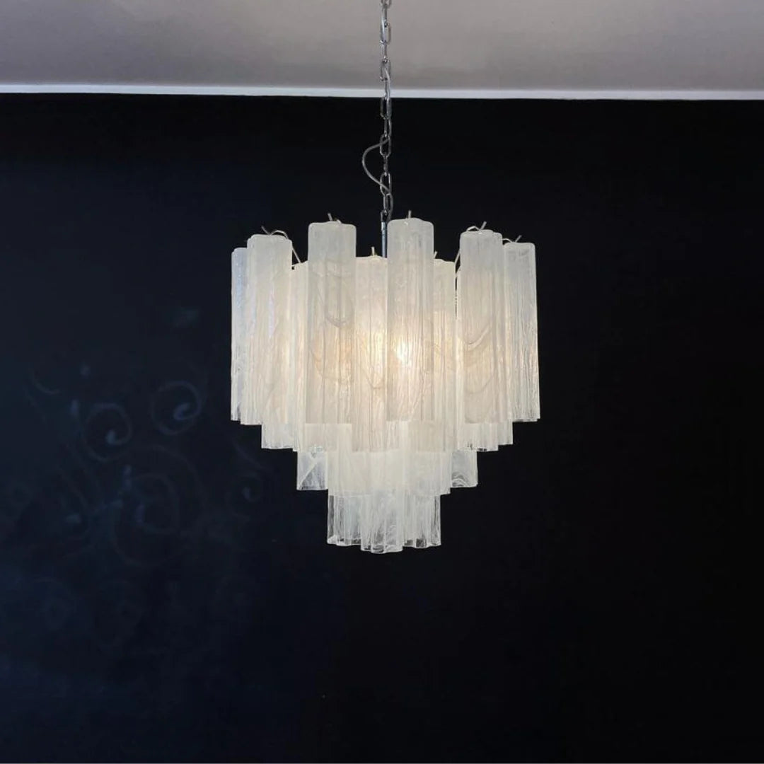 Experience elegance and charm with our White Murano Glass Tronchi Chandelier. The White glass tubes, crafted using a unique creation technique, come together to form a stunning star shape. With large tubes, this chandelier will add a touch of luxury to any space.